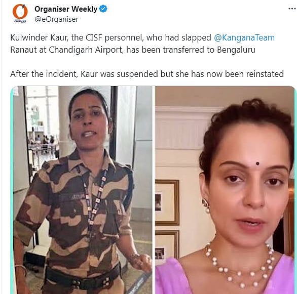 Earlier today, many X users including official social media handle of RSS mouthpiece Organiser Weekly, in a post claimed that Kulwinder has been transferred to Bengaluru.