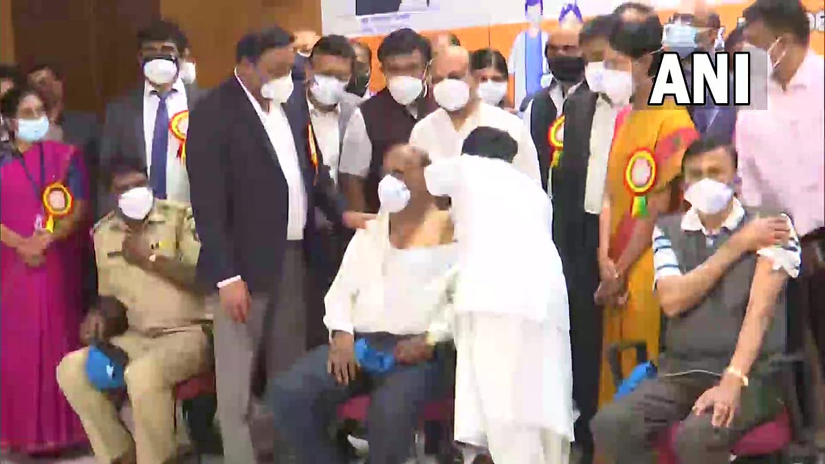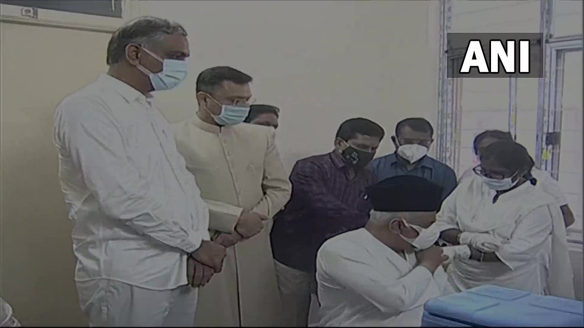 Telangana | COVID-19 vaccine 'Precaution dose' being administered to senior citizens above 60 years of age with co-morbidities at Govt Unani Hospital in Hyderabad.