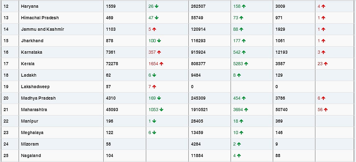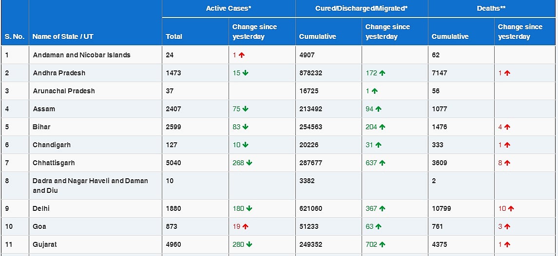 Here's the state-wise data of active cases and deaths released by the Union Ministry of Health and Family Welfare: