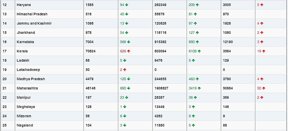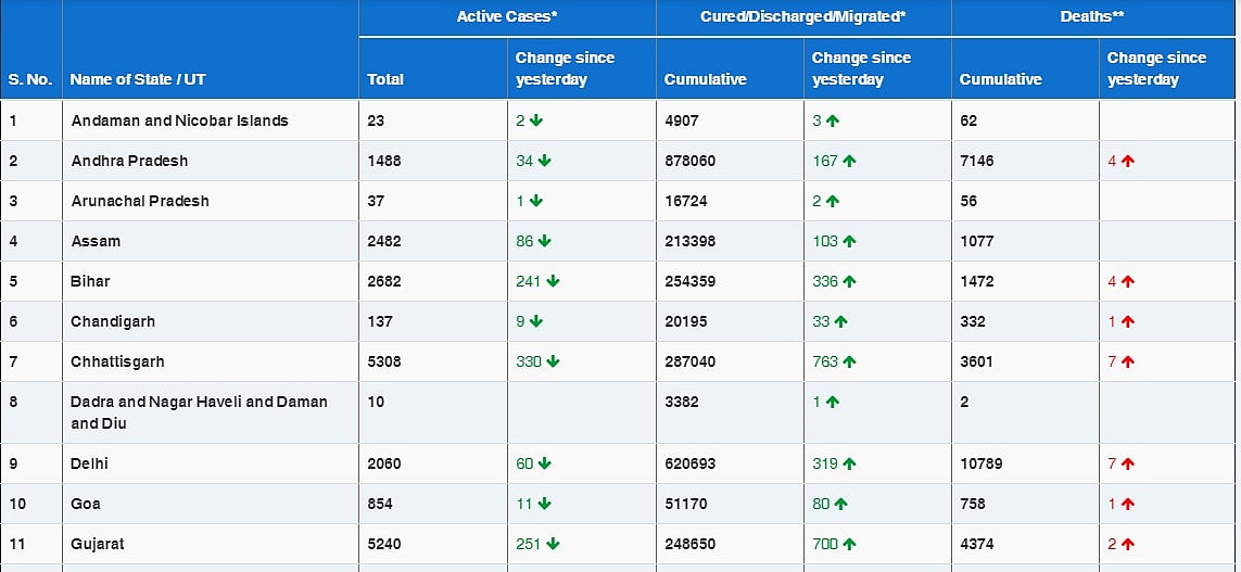 Here's the state-wise data of active cases and deaths released by the Union Ministry of Health and Family Welfare: