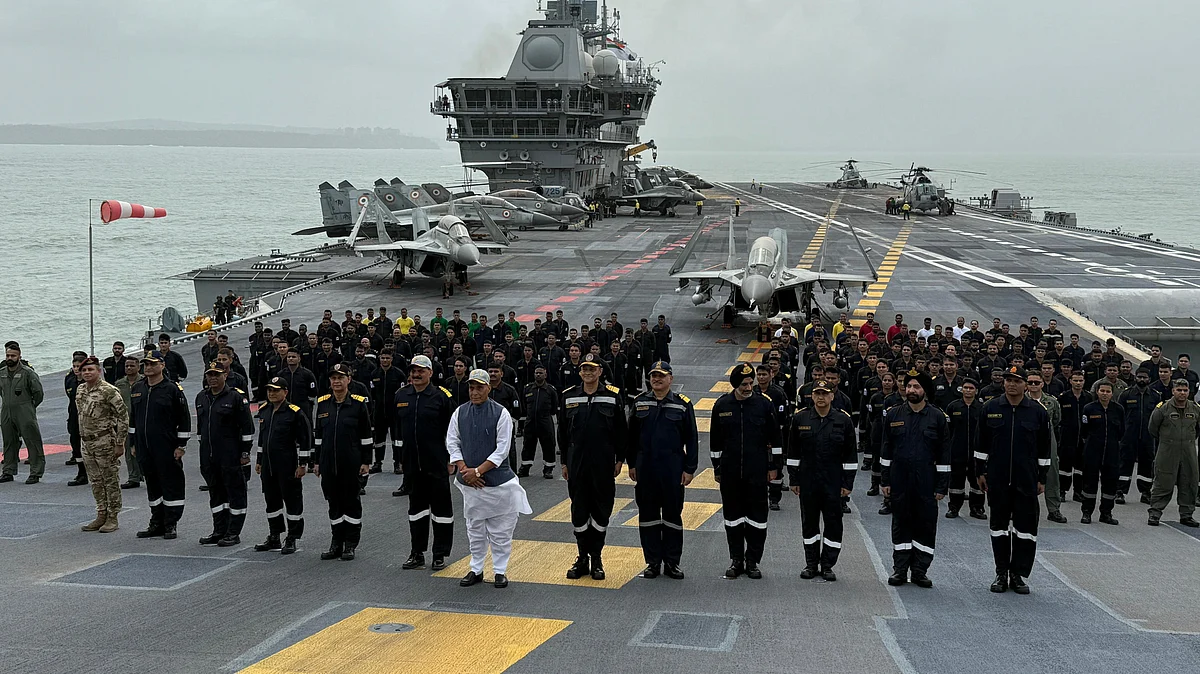 Mumbai: Defence Minister Rajnath Singh on Friday met Indian Navy personnel onboard the aircraft carrier INS Vikrant in the Arabian Sea on Friday. Notably, INS Vikrant played in key role in a military conflict with Pakistan as part of Operation Sindoor.