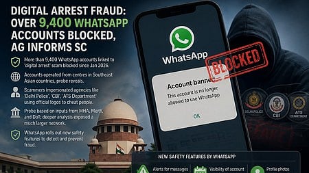 New Delhi: More than 9,400 WhatsApp accounts linked to India and involved in the so-called 'digital arrest' scam have been banned since January 2026, Attorney General R. Venkataramani told the Supreme Court.