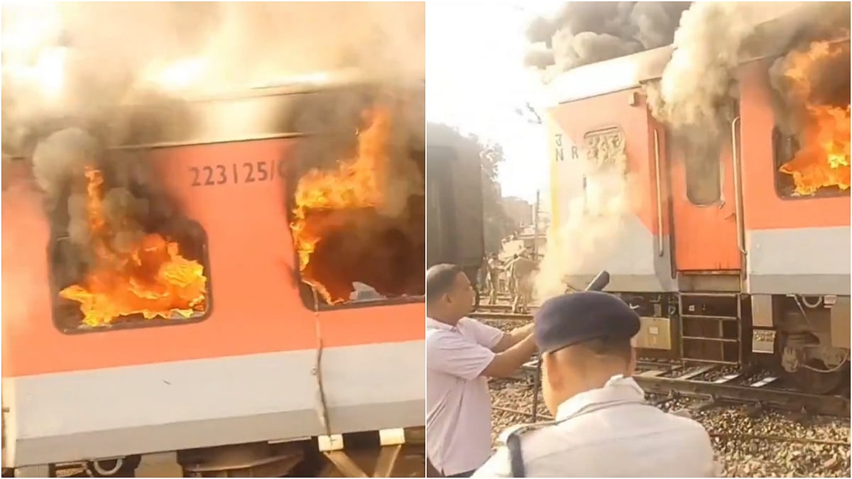 According to reports, as the flame was seen coming out of the train, it was stopped immediately. A firefighting operation was launched immediately. Dramatic visuals of the fire also surfaced online.