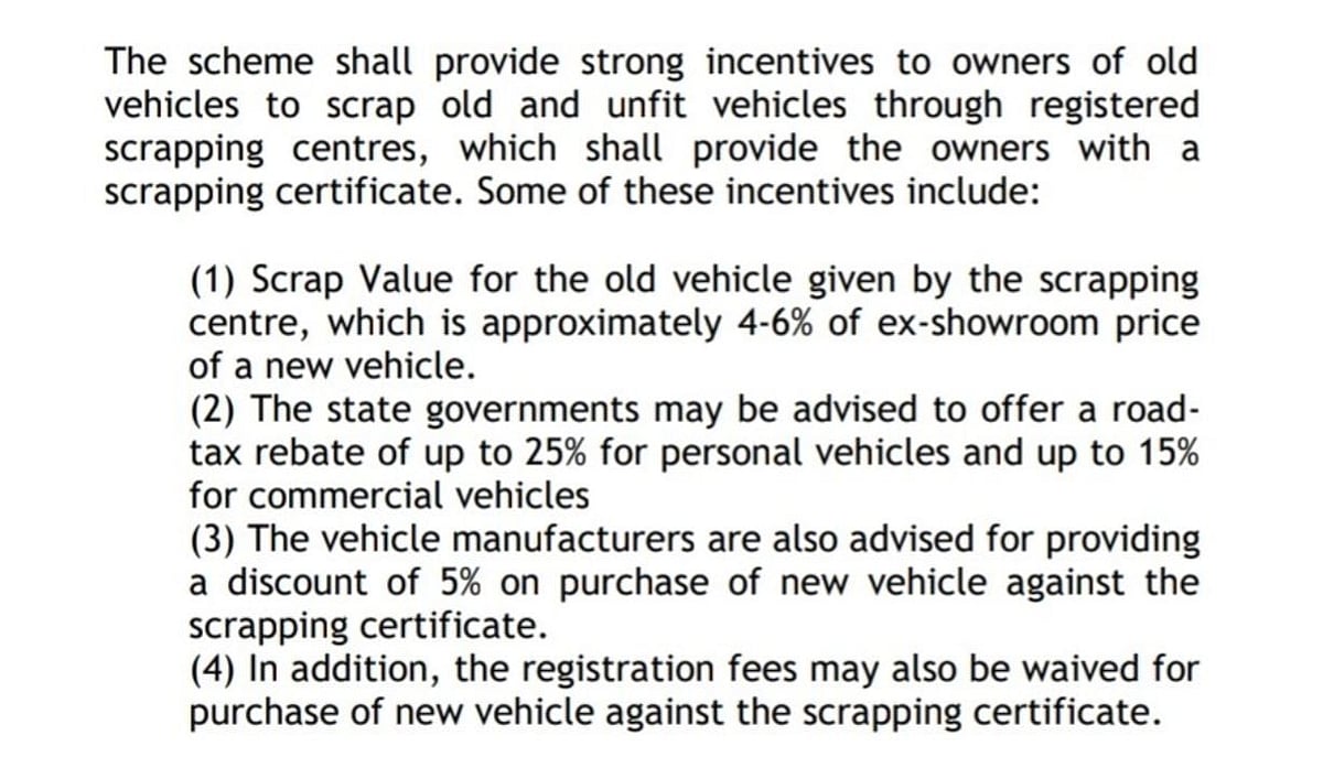 Gadkari has also issued an advisory to automakers, advising them to provide an incentive of a five per cent rebate for those buying a new vehicle after producing a scrapping certificate.
