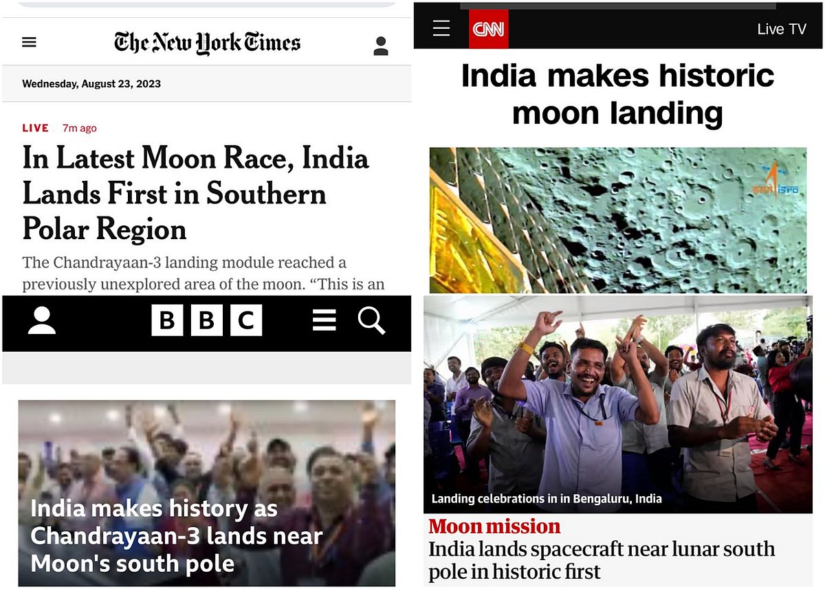"Chandrayaan-3: India makes historic landing near Moon's south pole," the BBC stated.