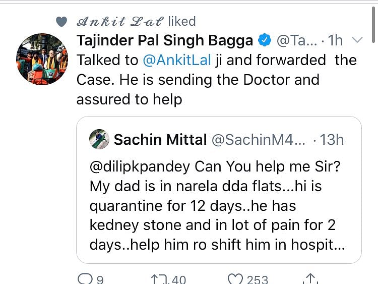 Take Delhi BJP leader Tajinder Bagga for example. Always active on social media, the politician how appears to have put the might of his influence and voice behind helping others. And Bagga does not have any problem asking oppsition leaders, such as those from the Aam Aadmi Party for help.