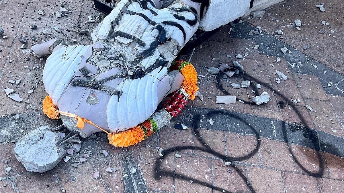 Maharaj discovered the Gandhi statue was reduced to rubble on Wednesday morning.