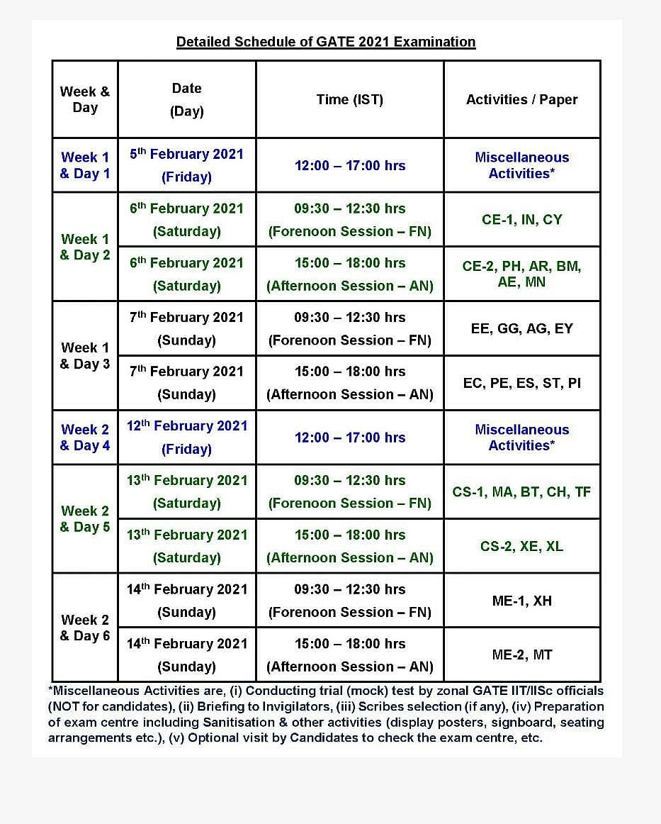 Indian Institute of Technology (IIT) Bombay has released the paper wise schedule for the Graduate Aptitude Test for Engineering (GATE 2021) exams.