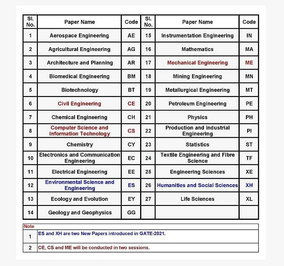 The schedule for GATE 2021 has been released for the 27 papers.