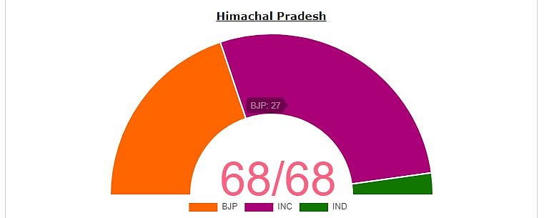 Cong wrests power from BJP in Himachal Pradesh, wins 35 seats out of 68, leads in 5
