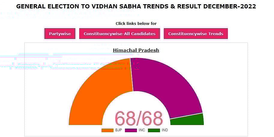 Himachal assembly results: Congress, BJP in neck-to-neck competition; both leading 32 seats, as per latest ECI trends.