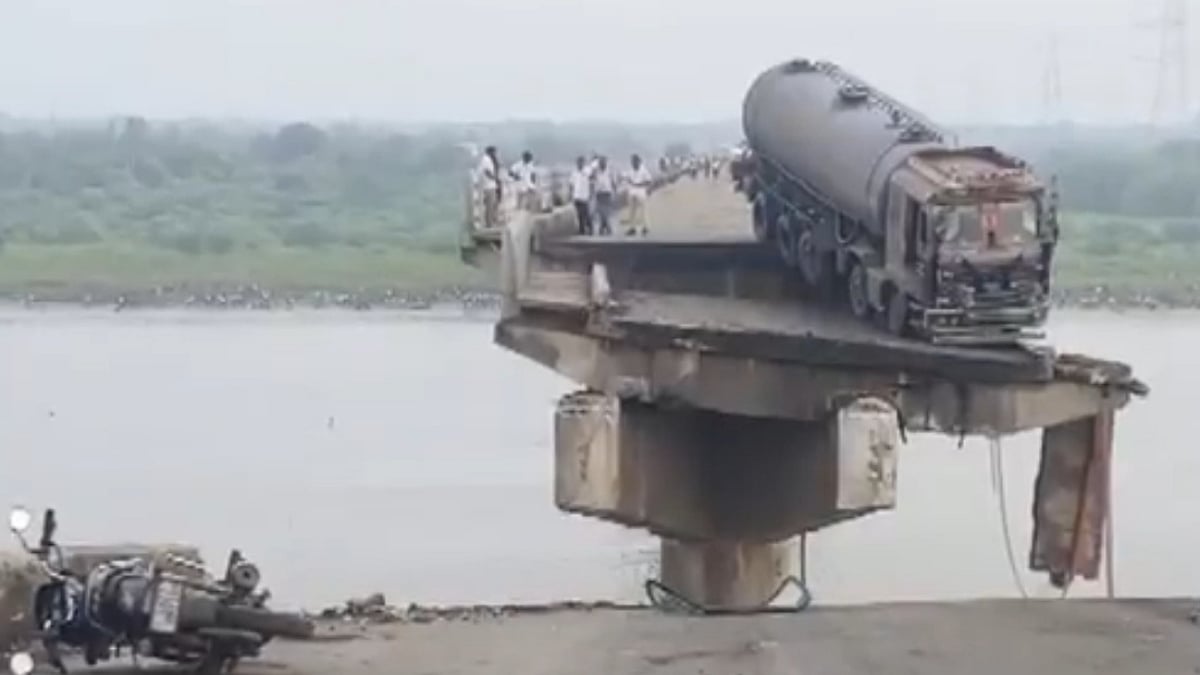Vadodara: At least nine people lost their lives after the Gambhira bridge connecting Vadodara and Anand districts of Gujarat collapsed on Wednesday, July 9. Several vehicles plunged into the Mahisagar River. However, a tanker had a close shave as it stopped just at the edge of the broken bridge.