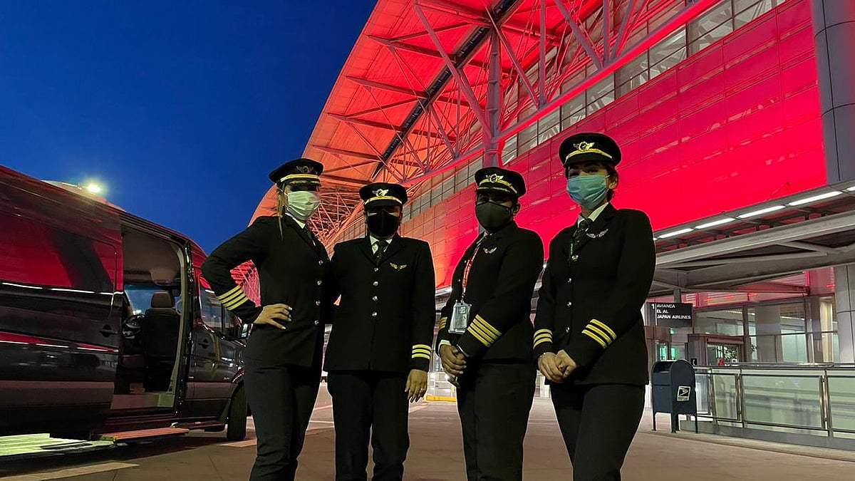 Members of the crew are: Captain Zoya Aggarwal, Captain Papagari Thanmai, Captain Akansha Sonaware and Captain Shivani Manhas.