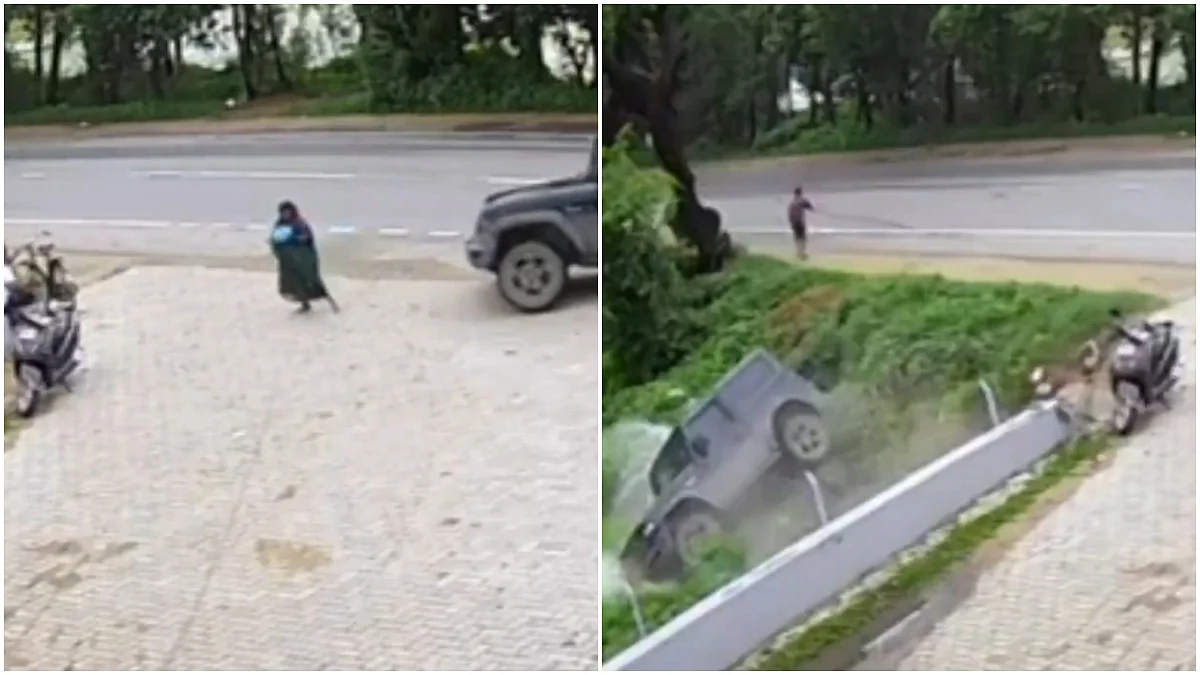 The video shows a woman walking on the road when the four-wheeler suddenly came at high speed and hit her. Meanwhile, two people sitting on the roadside were also hit by the vehicle. All the victims were thrown into a ditch. The Thar also plunged into the same ditch.