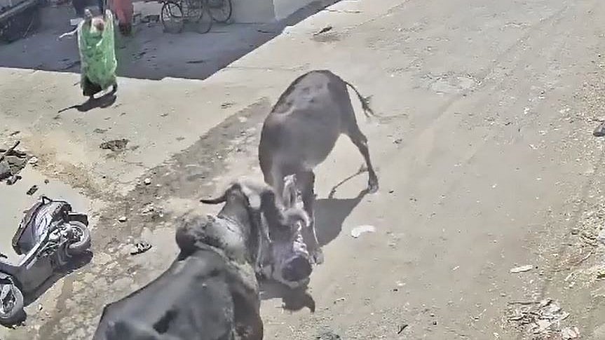 According to reports, the incident occurred in Veraval village of Kotda Sangani taluka on Monday around 12:40 pm, when an Activa rider was attacked by a stray bull in a narrow lane of Shivnagar.