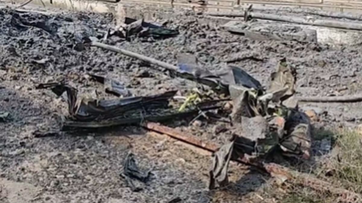 Visuals from the spot have surfaced. The footage shows police at the scene and broken pieces of the aircraft scattered.