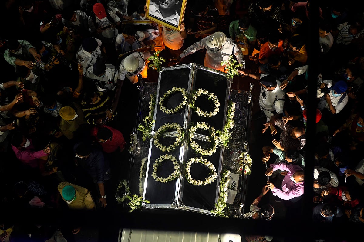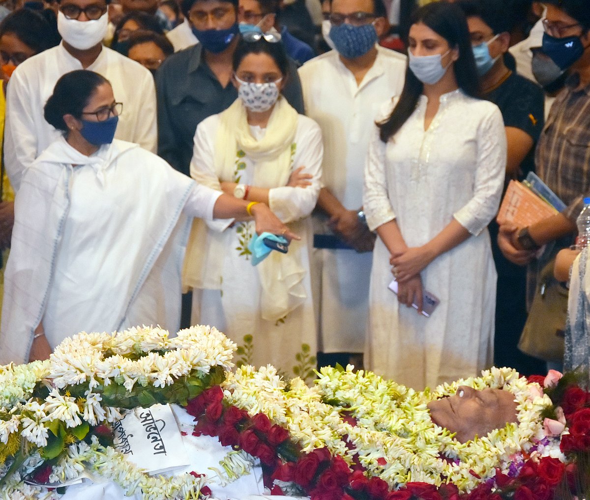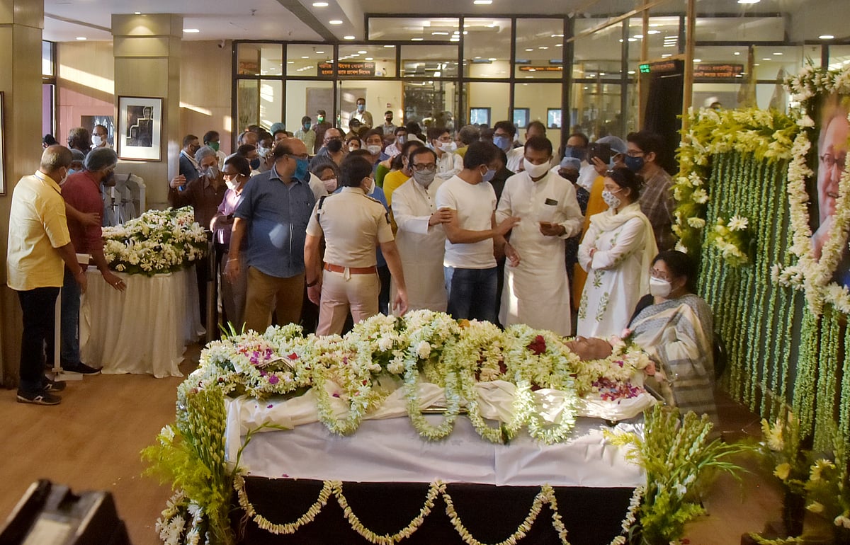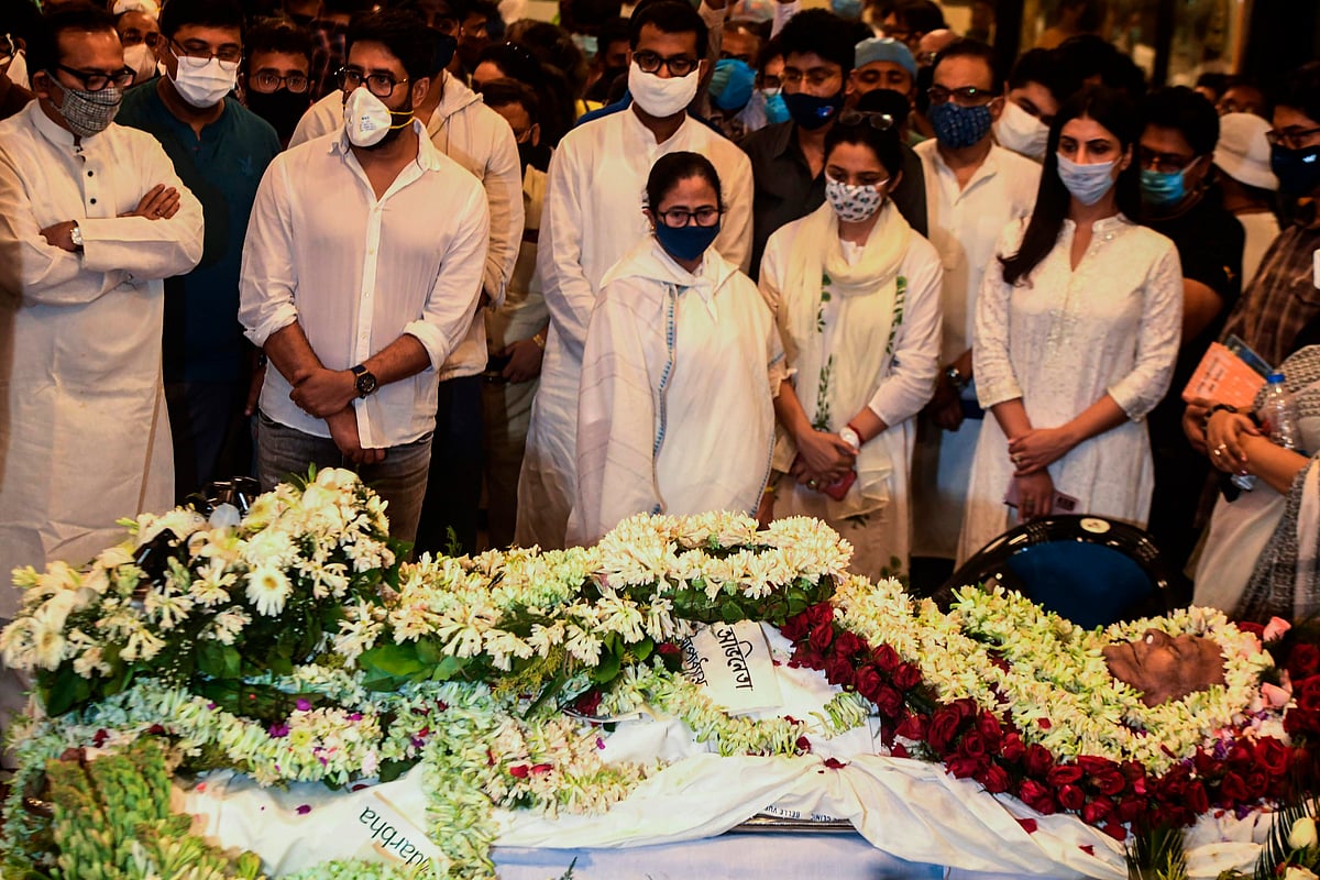 Earlier in the day, Chatterjee's body was brought to his south Kolkata residence from the hospital, where he fought for 40 days before succumbing, and was kept there for about 20 minutes.