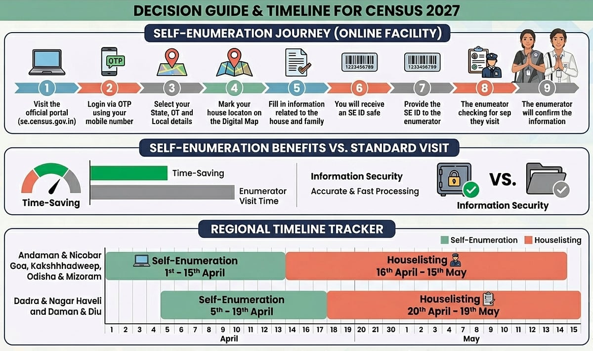 A standout feature of Census 2027 is the Self-Enumeration (SE) facility. This is a secure digital window that allows citizens to take charge of their own data entry before an official arrives.