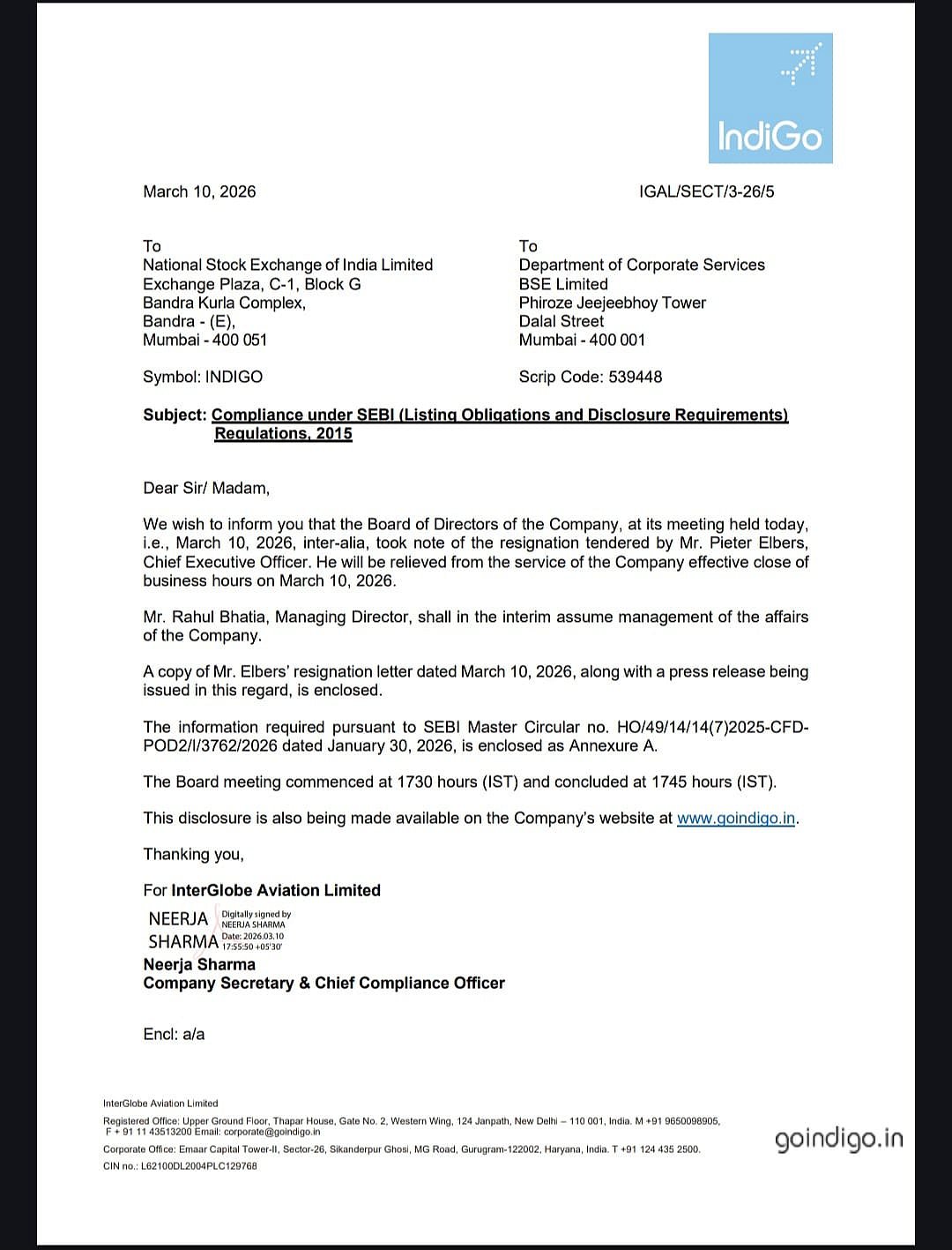 InterGlobe Aviation Limited, the parent company of IndiGo, announced on Tuesday that Chief Executive Officer Pieter Elbers has stepped down from his role with immediate effect. The decision was confirmed following a meeting of the airline’s Board of Directors held on March 10.