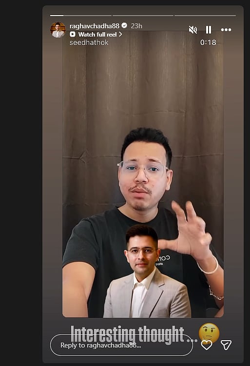 The MP shared a reel on Instagram by a user named Rihan, who goes by the username ‘seedhathok’, in which the creator suggested that Chadha should now form his own party, which could garner him more support.