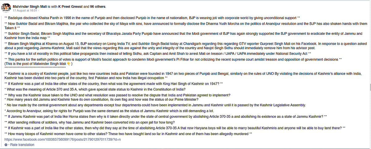 "He (Mali) said that Kashmir is the country of Kashmiris, which means Kashmir is a separate country. He also said that India and Pakistan have illegally encroached upon Kashmir. Rahul Gandhi, is this not an insult to martyrs?” Bikram Majithia told India Today. “If he [Rahul Gandhi] endorses Mali's views, then the real face of the Congress will be exposed. If not, what action will he take against Mali?” he added.
