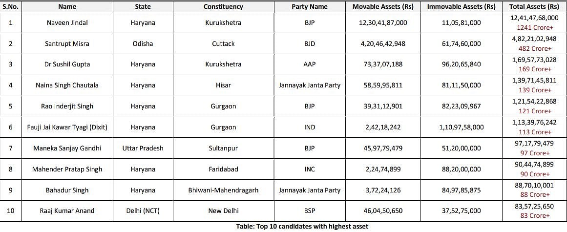 BJP candidate from Haryana's Kurukshetra, Naveen Jindal, is the richest candidate in the 6th phase of the Lok Sabha elections, with assets worth ₹1,241 crore.