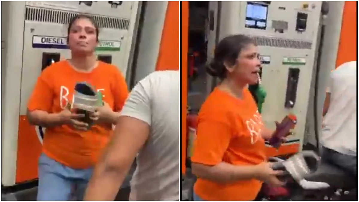 Lucknow: A high-voltage drama unfolded at a petrol pump in Uttar Pradesh's Lucknow, where a woman threatened men with slippers after a minor dispute. The incident was recorded on camera, and soon the video went viral on social media.
