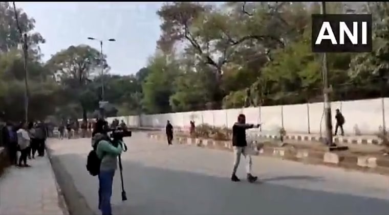 The man was identified as Rambhakt Gopal Sharma, was an armed man was detained on Thursday after he brandished a pistol at Jamia Millia Islamia students demonstrating against the Citizenship (Amendment) Act on Thursday, police said.detained after he fired at students demonstrating against the Citizenship (Amendment) Act, police said. The man was overpowered by protesters.