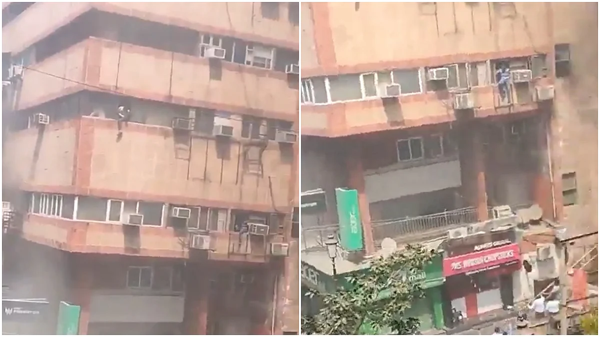 Noida: A massive fire broke out in Uttar Pradesh's Noida on Tuesday. The blaze erupted at a multi-storey building in the city's Sector 18 area. Dramatic visuals showing people jumping from the windows of their houses to save their lives surfaced online.