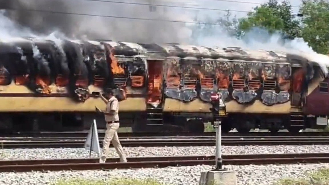 Tirupati: A massive fire broke out in the Hisar Express near Andhra Pradesh's Tirupati on Monday. The train was running from Rajasthan to Tirupati. The blaze triggered an emergency response from railway officials.