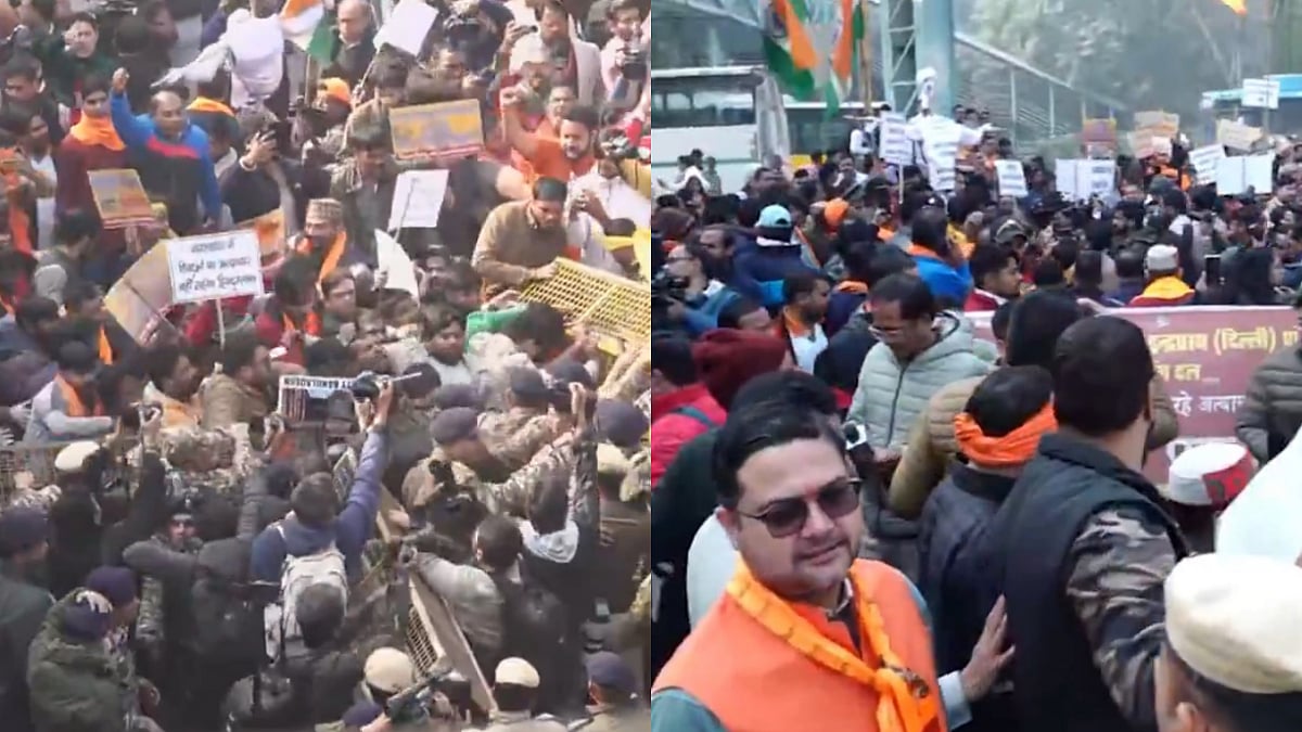 The protesters were stopped by multi-layered security cordons comprising police and paramilitary staff, reported ANI. Apart from the VHP, Sarbo Bharatiya Hindi Bangali Sangathan and Bajrang Dal also participated in the protest near the Durgabai Deshmukh South Campus Metro Station.