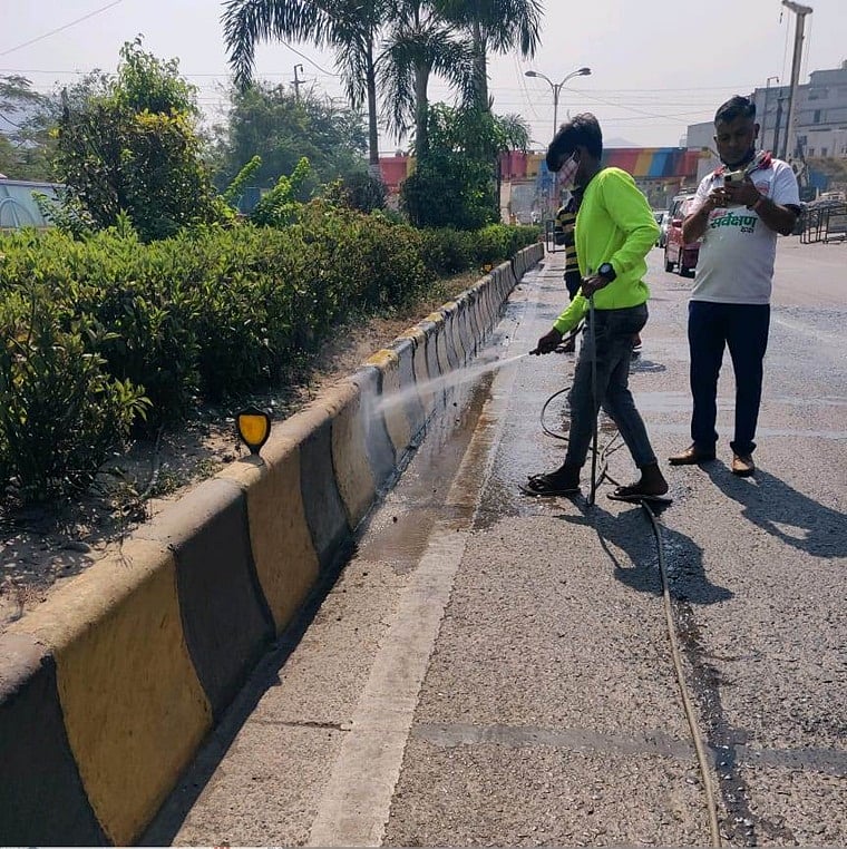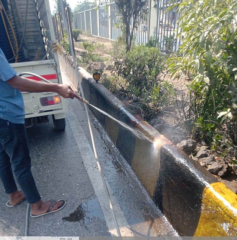 While the NMMC is putting its best efforts to improve the city's cleanliness by implementing new concepts even it is many small but useful. The idea has been conceived by municipal commissioner Abhijeet Bangar. Now busy roads under the NMMC area are being cleaned with treated water.