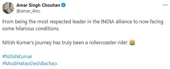 "From being the most respected leader in the INDIA alliance to now facing some hilarious conditions. Nitish Kumar's journey has truly been a rollercoaster ride!"