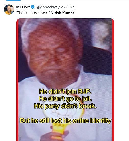 "The curious case of Nitish Kumar: He didn't join BJP. He didn't go to jail. His party didn't break. But he still lost his entire identity."