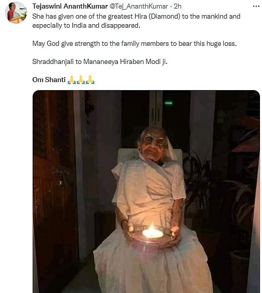 People paid tribute to Heeraben and wrote, "She has given one of the greatest Hira (Diamond) to the mankind and especially to India and disappeared. May God give strength to the family members to bear this huge loss. (sic)"