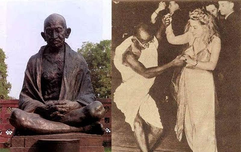 Gandhi Ji dancing with British lady. This is completely false. The man who is dancing with the lady is an actor. This photo was clicked during a party, where an Australian actor dressed up like his idol Mahatama Gandhi showed up.
