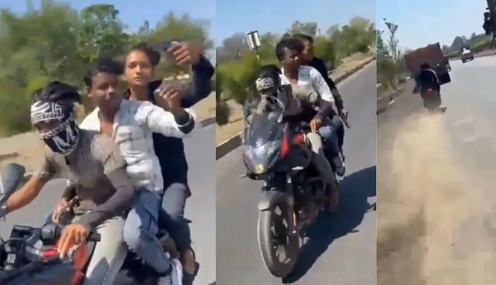 The viral footage shows the speeding motorcycle overtaking trailers on the highway before suddenly losing balance. The bike crashed into a trailer, leading to the instant deaths of the three riders. The two youths on the trailing motorcycle also fell and sustained injuries.