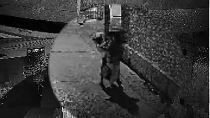 The footage shows the woman walking along a lane carrying a bag, while a man follows her from a distance. Seeing no one around, he suddenly runs towards her from behind and grabs her.