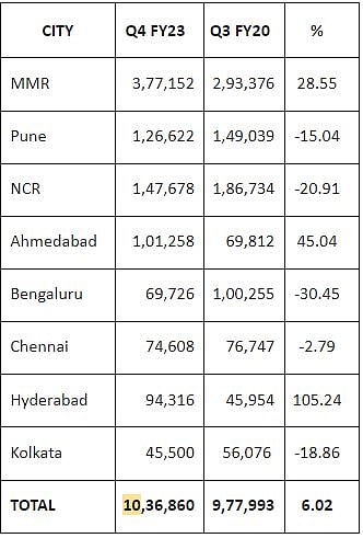 The unsold inventory of homes at the seven metropolitan cities of India has touched a new peak of 10,36,860, which is a 6.02% rise since pre-pandemic. The Mumbai Metropolitan Region (MMR) tops the chart among the 7 cities with 3,77,152 homes that found no takers for, as at the end of fiscal 2022-23