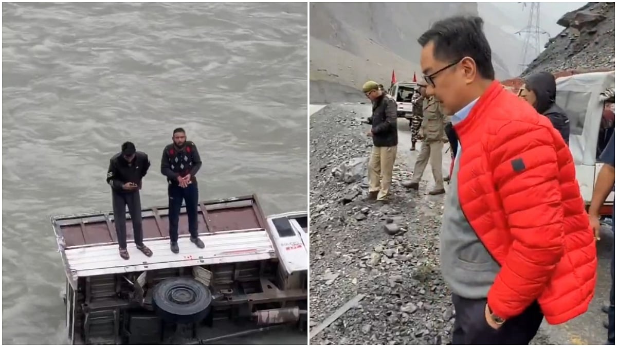 Rijiju shared a video of the two people standing on the vehicle in the middle of the river. "Before reaching Drass in Ladakh, one vehicle fell into the river just ahead of our Convoy. Luckily, we were on time and both persons survived," the union minister wrote along with the video.