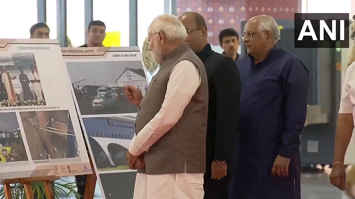 Surat, December 17: Prime Minister Narendra Modi on Sunday inaugurated the new terminal building of Surat airport in Gujarat. The new integrated terminal building at the airport is equipped to handle 1,200 domestic passengers and 600 international passengers during peak hours.