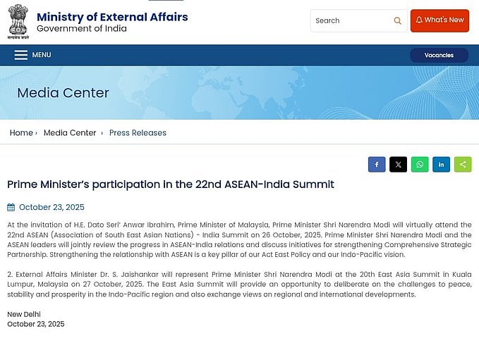 This is not the first time the prime minister has declined to personally attend an ASEAN summit meeting. Modi opted out of an ASEAN meet on November 12, 2022, in Phnom Penh, and India was instead represented by Vice President Jagdeep Dhankhar.