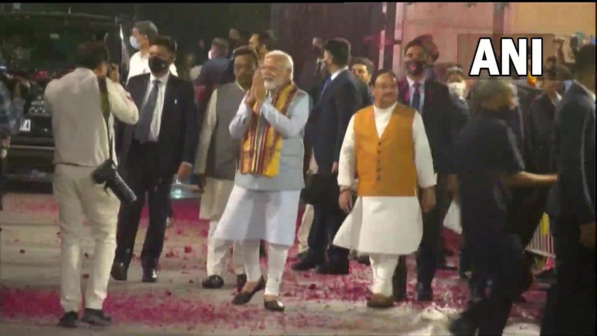 Prime Minister Narendra Modi arrived at Bharatiya Janata Party Headquarters in Delhi after the party emerged victorious in Goa, Manipur, Uttarakhand and Uttar Pradesh assembly elections.