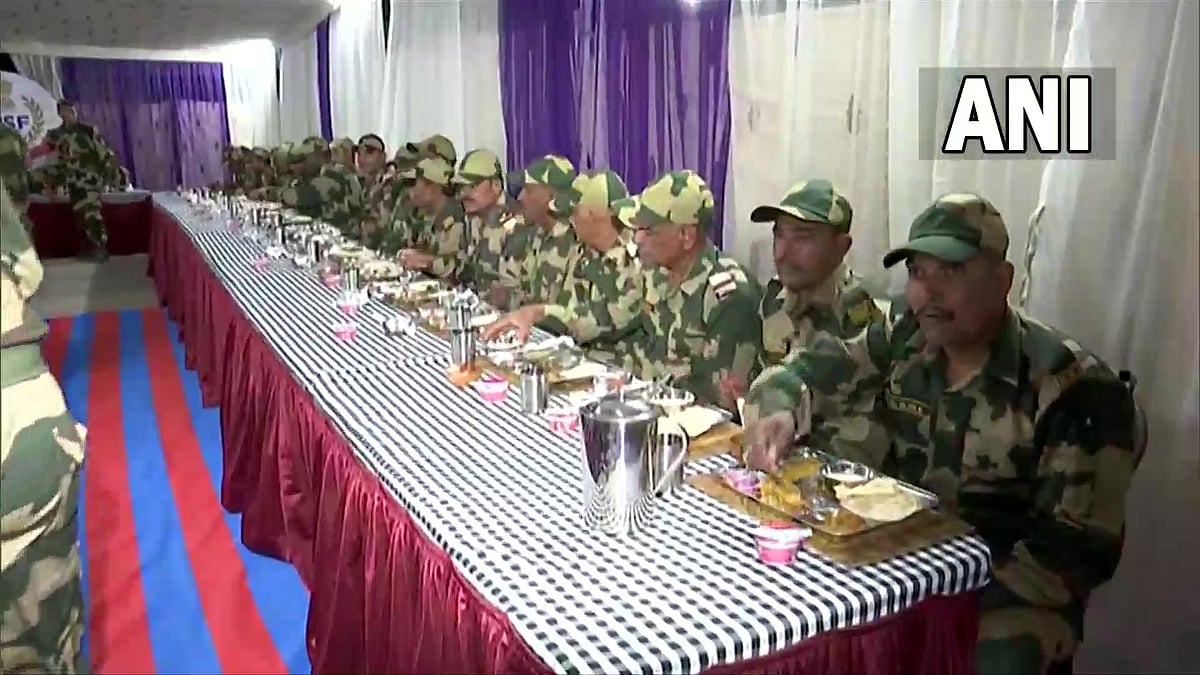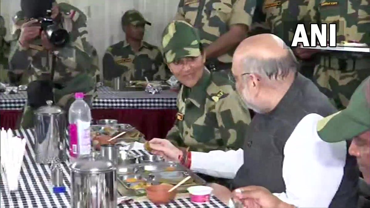Amit Shah and Shekhawat were captured having dinner with BSF jawans and officers at Rohitash border outpost in Jaisalmer. This will be the first time when the Home Minister will be spending a night with BSF personnel near the border.