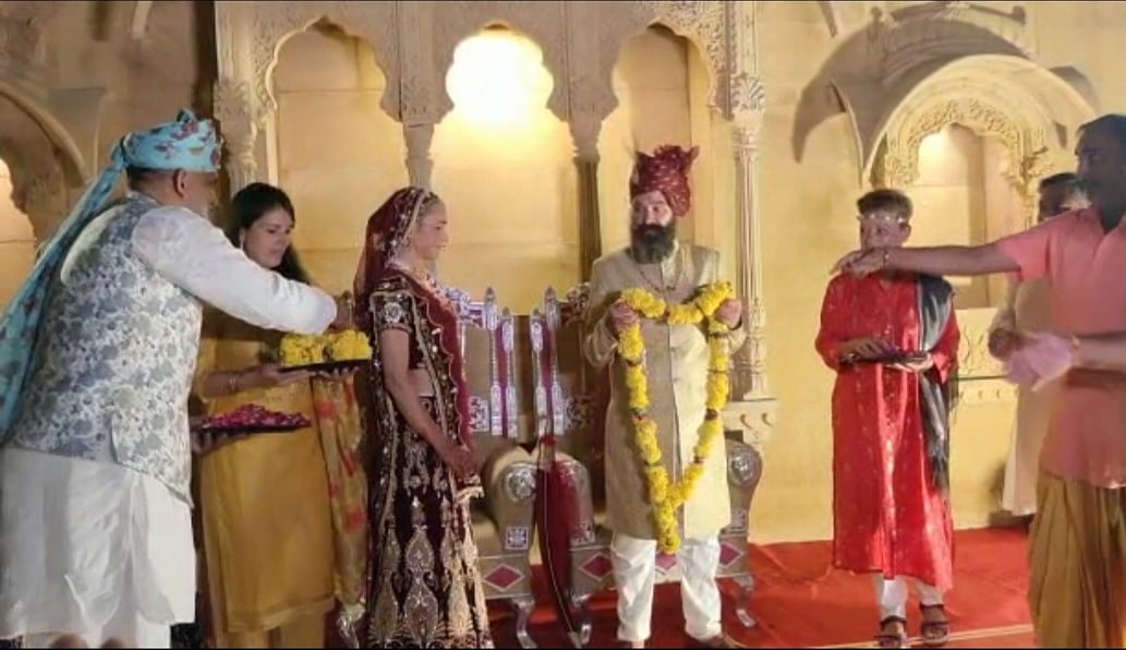 The golden city of Rajasthan's Jaisalmer enjoyed a unique wedding on Wednesday evening where a couple from Italy got married again with Hindu rituals and the arrangements for this wedding were made by a Muslim who played the role of Dharam Bhai, the father of the bride.