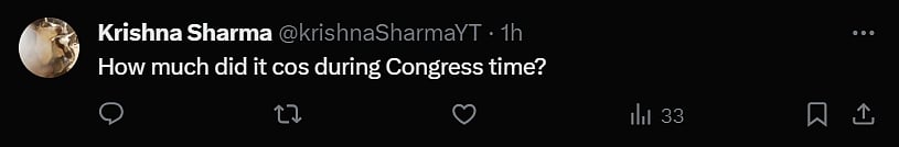Another user @KrishnaSharmaYT asked, "How much did it cost during Congress time?"