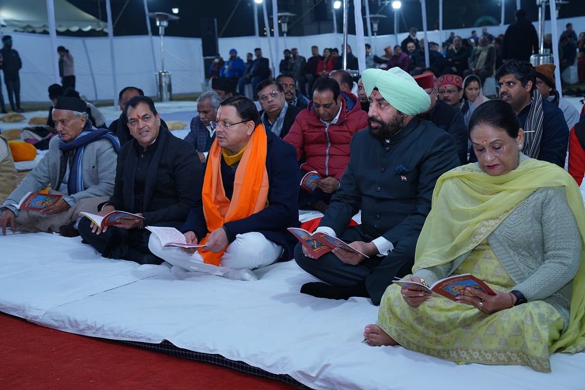 On the auspicious occasion of consecration of Prabhu Shri Ram Temple, A grand Shri Ram Sandhya was organized with recitation of Sunderkand in the presence of Governor lt Gen Gurmit Singh and Chief Minister Pushkar Singh Dhami at CM House. The Governor and the Chief Minister recited Sunderkand and Ram Bhajan for three hours. Due to the recitation of bhajans of Sunderkand presented by the team of bhajan singer Swati Mishra and Shri Vivek Nautiyal, everyone was seen immersed in devotion to Shri Ram. The atmosphere became more devotional with the beautiful recitation of Sunderkand.