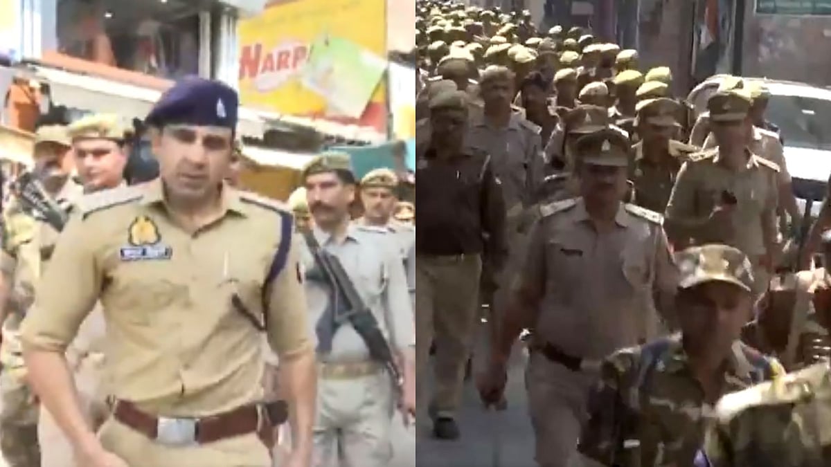 Ahead of the Holi celebrations in Sambhal, Uttar Pradesh, the administration has carried out intense security preparations around the city to ensure peace. Police personnel in large numbers conducted a flag march in the district. Visuals of the flag march have been shared by news agency ANI.