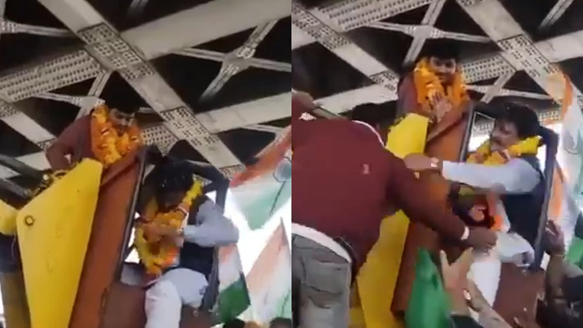 Senior district officials and BJP workers were also present at the spot. The MP was safely brought down. However, after coming down, Singh called the crane operator and slapped him.