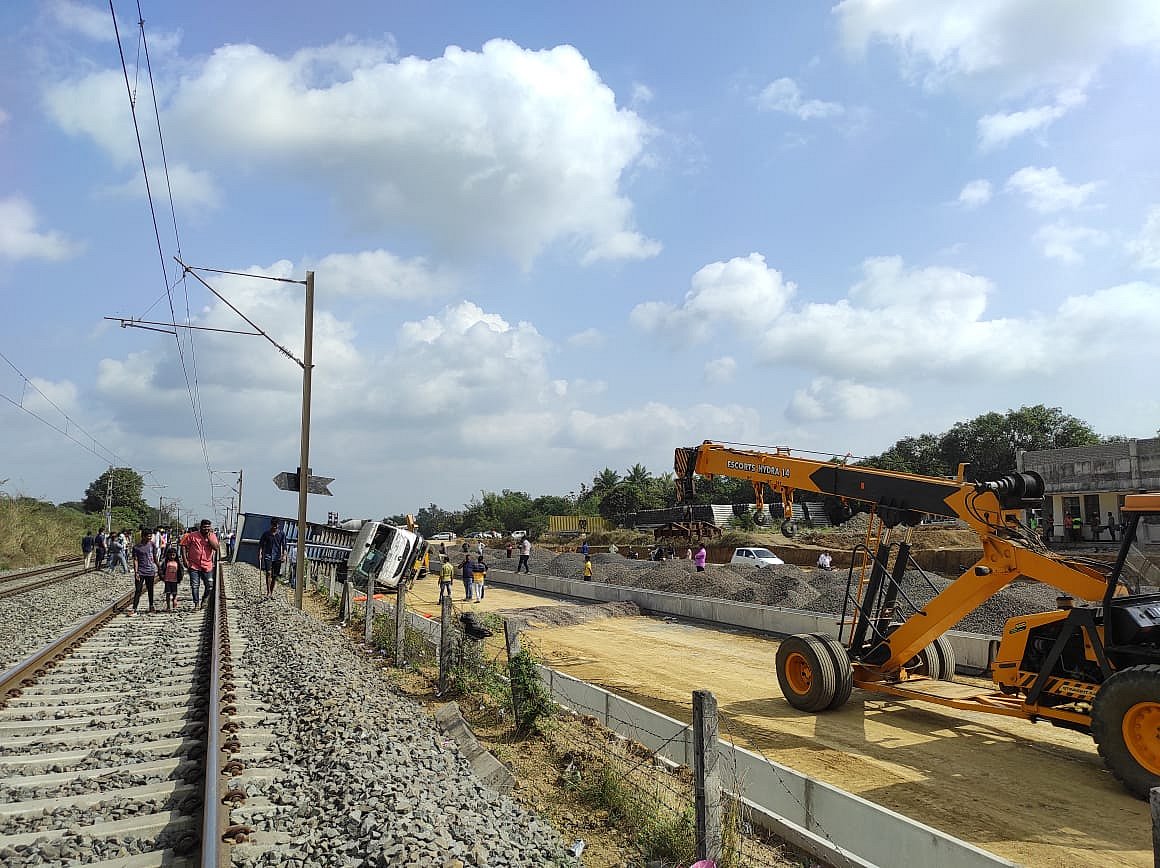 One coach of the double-decker express was slightly damaged and was detached subsequently. The route has now been cleared.